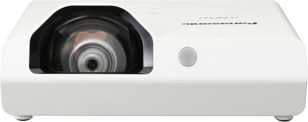 Panasonic PT-TX320A con lente gran angular que permite una muy corta de proyección, consiga imágenes amplias en pantallas de 100″ o más con una distancia de proyección de tan solo 80 cm. a 1 metro. Con una luminosidad de 3200 lumens y una resolución XGA de 1024 x 768 píxeles. Ideal para presentaciones donde no dispongamos de espacio para el proyector. Permite una distancia mínima de tiro de tan solo 50 cm. La proyección a corta distancia no solo reduce las sombras del presentador, también los destellos de luz de la proyección.